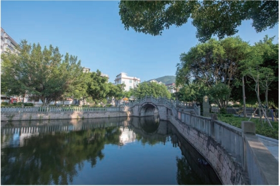 20世纪六七十年代,大队统一组织社员兴修水利,开凿南北两翼的河浦,建设南北两个抽水站,大队在水利部门技术指导下,开凿贯通环山水利,贯穿南北水渠1500 多米,引水上山,把园地、山地改成可耕地良田,这样不仅扩大耕种面积,农业产业结构也发生了变化,原来只能种单季番薯,现在可以改种水稻,还可以种植茉莉花等经济作物,同时确保岱边村增加耕地120 亩。那个时期满山遍野都是忙碌的农民社员种植农作物或砍柴的身影,岱边粮食产量达到巅峰,农田基本建设也做得最好。除了17 个生产队外,大队还专门成立森林队(队长杨良平,队员文美、林在如、林勤佺、林秋銮、张思銮、谢鼻鼻等),常年累月植树造林,现在山上的松木、万年青、杉木都是在那个年代种植的。1983年村委通过努力争取到省水利厅首批暗灌工程试点项目,拨专款8万元先后改造13 千瓦电灌站两座,埋设水泥管长3700 多米,建造进水池、分水井、放水井等水利设施。该工程完工后产生了巨大的经济效益和社会效益,灌溉及时、省工、省水,合理配水,促进农业生产的稳产增收。每年还节省了不少电费和清淤、除草的劳力费用,旧土渠修成机耕路方便了农业机械化操作,部分沟浦填平扩大了耕地面积,村民广泛受益。
