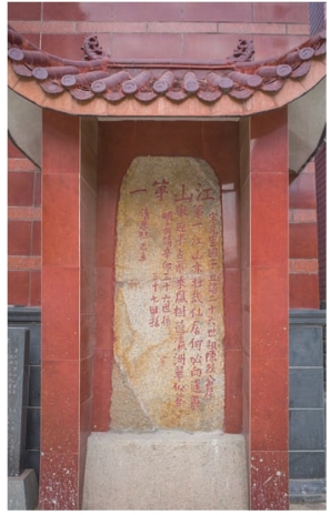 碑亭内有“江山第一”诗碑。碑文系正楷,横书“江山第一”四字,左边落款是“宋元丰国子监直讲二十六世陈烈公题”,碑中正文镌刻“江山第一亦壮哉,仙居何必问蓬某,墩迎半占飞来凤,树绕瀛洲碧似苔”一诗,右边落款是“明嘉靖辛卯三十六世孙,三十七世孙,清康熙己未”。陈烈字李,二都阳厦人,北宋著名学者,品行端严,清节茂行,与候官陈襄、郑穆、周希孟,并称“海滨四先生”,至和二年(1055)诏为将仕郎,本州教授。嘉祐三年(1058)召为国子监直讲。传入县志《儒林》。该碑原立于江山寺前墙边,有碑亭护之,“文革”期间被破坏断为二段,散落铺为路间。1984年,原长乐县政协及文化局审核古迹时,与上洋村干部到村中寻找碑石,找到后再将碑立于原位。“江山第一”诗碑是我市第一碑,具有较高的历史、文物的价值,是有关江山寺的地方史变迁的重要实物研究资料。