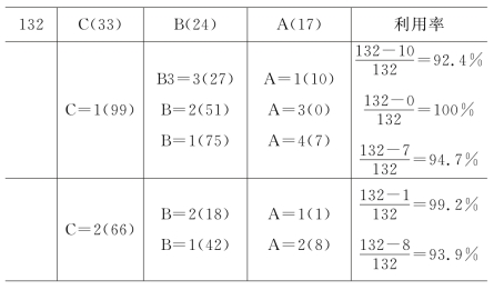 显然,截24cm 4根,截33cm 1根,利用率96.97%为最高。