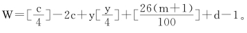这里c是公元年份的前两位数:y是公元年份的后两位数;m是月数,不过1月和2月分别看成上一年的13月和14月;d是日数。按蔡勒公式求出W后,再求其除以7的余数,便得到星期数。