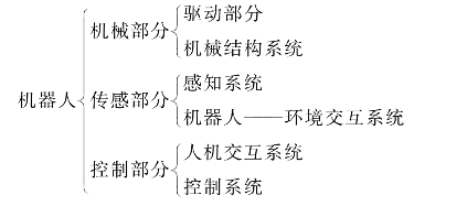从专业角度来说,机器人是由机械部分、传感部分、控制部分三大部分所组成,这三大部分又可以分为六个子系统(如下图)。