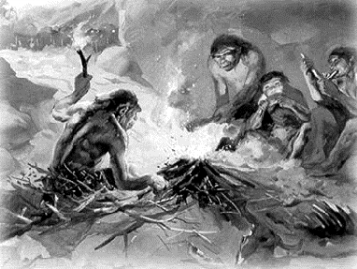 捷克作家米兰·昆德拉说过:“任何事物在其物质化的实现和命名之前,它的实质早已存在。”在自然界,许多自然现象是先于人类主体意识而存在的,如作为一种自然现象的火,是先于人类而存在的。但人类对火特有的属性的把握和认识,则是随着人脑的发达和人们对各种自然现象的认识而发展的。人类并非一开始就能自觉地利用火来烧制熟食,但这种将生食通过一定的温度,改变其物理化学结构,从而使之成为熟食的行为到底始于何时,现代人类已无法考证,也许我们可以做这样的猜想:由于某次雷阵雨,雷电击燃了一大片原始森林,出现了一大片火海,有一些来不及逃走的动物,被大火烧死。大火过后,一些未被完全烧化的动物,被返回或偶然路过的寻找食物的先民们从灰烬中捡到并食用。一经食用,便发现被火烧过的动物的肉体既易于咀嚼,又味美可口,同时还便于消化。这样,原始人便有意识地从燃烧过的灰烬中寻找食物,长此以往,从社会生活经验中得到启发,先民们便开始逐步地用火来烧烤食物。自然界除了电闪雷击引起的火外,还有由火山熔岩、岩石撞击引起或易燃物在高温下自燃所引起的火。所有这些自然生成的火,在当时的生存环境中要对其控制、利用和保存是极为不易的,于是便出现了人工取火。在中国文化传说中,流传最广的人工取火故事便是“钻木取火”了:上古之时人们因生食而伤胃生疾,于是便“有圣人作,钻燧取火以化腥臊,而民说之,使王天下,号之曰燧人氏”。这也许只是一种传说,因为中国文化中有许多这样的神话传说,如女娲抟黄土造人、伏羲氏发明渔猎、神农氏发明农业生产,有巢氏教人建筑房屋等等,不一定真有其事,但可以肯定的是,这些人可能就是某一方面最早的专家,随后因其有特别的技艺而被人们神化,以至后来便将许多人的实践成果或发明创造综归于这些代表性人物。