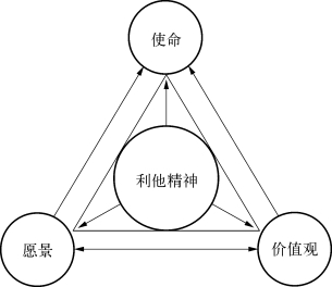 伟大公司的创业者或领导者,总是具备普世的价值观、坚定的信念和积极的态度,有了这些,才能把利他精神融入公司的愿景、使命、价值观。正因为这样的公司从一开始就植入了基业长青的基因,所以与众不同(图4-4)。