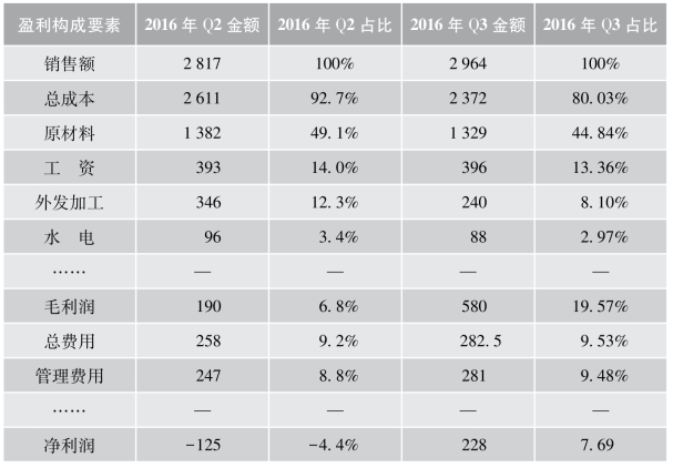 表8-1 A公司2016年季度利润分析表 (单位:万元)
