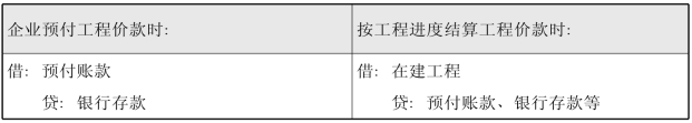 企业进行在建工程预付的工程价款,借记本科目,贷记“银行存款”等科目。按工程进度结算工程价款,借记“在建工程”科目,贷记本科目、“银行存款”等科目,如表3-8所示。