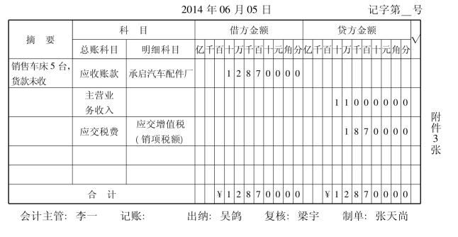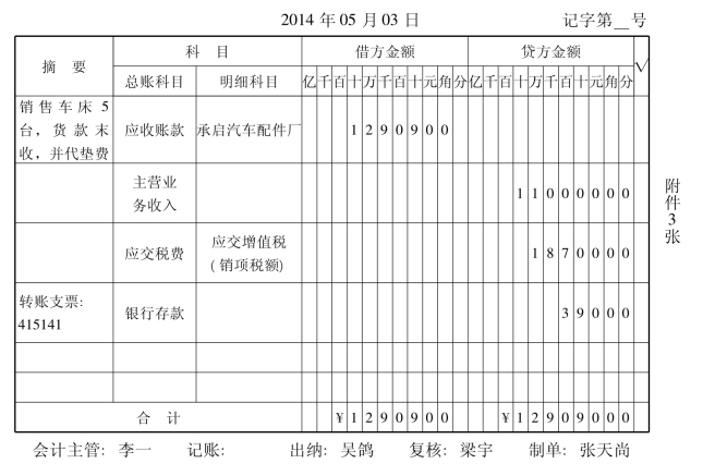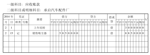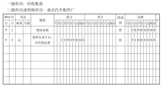 (3)往来会计将记账凭证提交财务负责人稽核,稽核后根据记账凭证登记“应收账款明细账”。