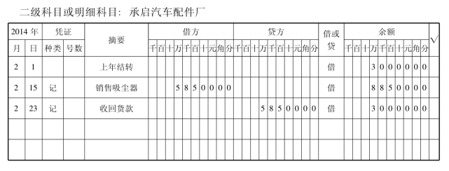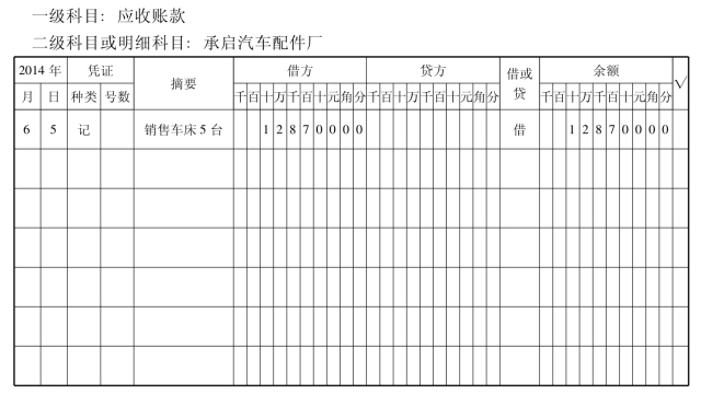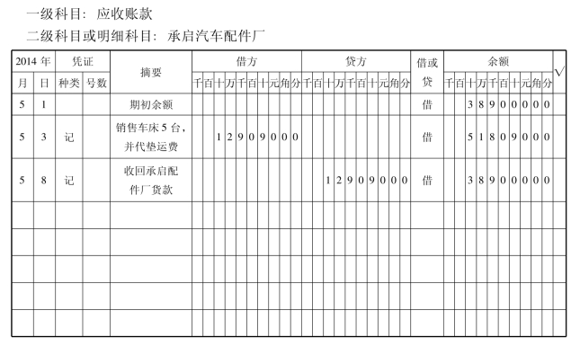 (7)往来会计将记账凭证提交财务负责人稽核,稽核后根据记账凭证登记“应收账款明细账”。