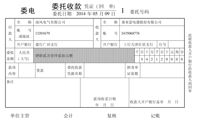 表4-16 进账单(收账通知)