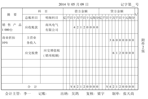 表4-14 记账凭证