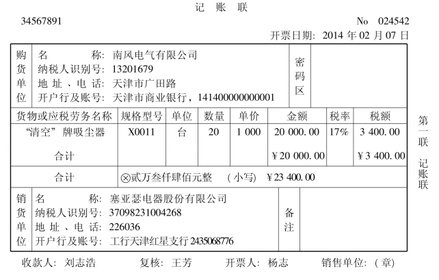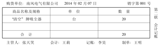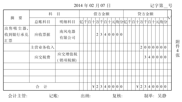 2014年2月7日,塞亚瑟电器股份有限公司销售给南风电气有限公司“清空”牌吸尘器20台,单价1000元,收到承兑期为60天的银行承兑汇票。2014年4月7日收回票款。