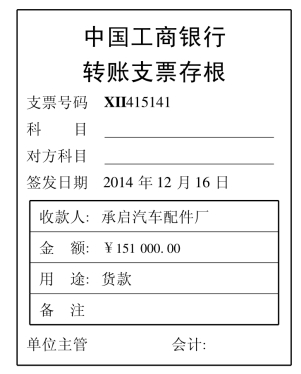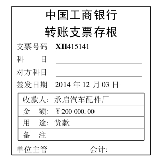 (1)支付预付款,收到银行转账支票存根及承启汽配的收据。