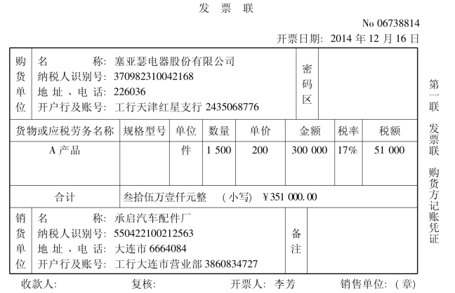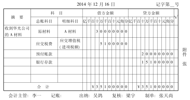 (5)2014年6月25日,塞亚瑟电器股份有限公司收到材料时,财产物资会计编制会计分录如下:
