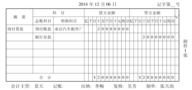 (3)经相关会计人员复核后在复核栏签字或盖章,并登记预付账款明细账。