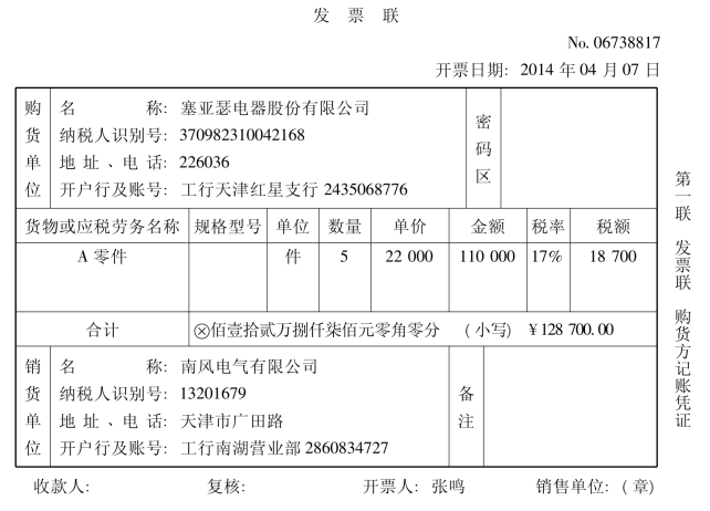 (2)塞亚瑟电器股份有限公司往来会计根据审核后的销售发票发票联、商品入库单记账联等填制记账凭证。