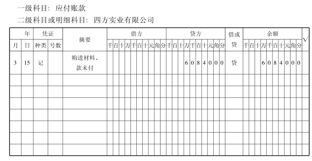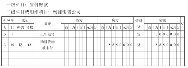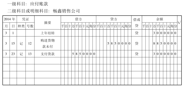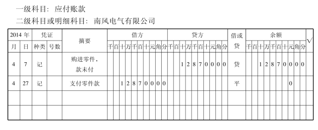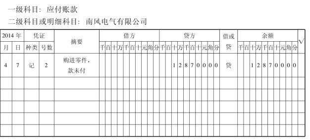 (7)往来会计将记账凭证提交财务负责人稽核,稽核后根据记账凭证登记“应付账款明细账”。