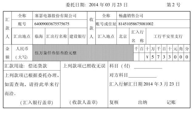 (6)往来会计根据审核后的电汇凭证回单填制记账凭证。