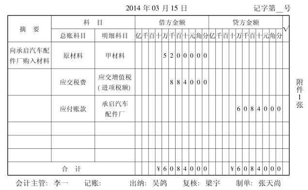 (3)往来会计将记账凭证提交财务负责人稽核,稽核后根据记账凭证登记“应付账款明细账”。