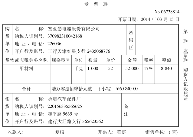 2014年3月15日,塞亚瑟电器股份有限公司向承启汽车配件厂购进材料,款未付。