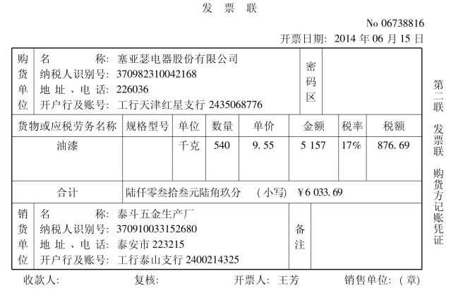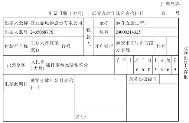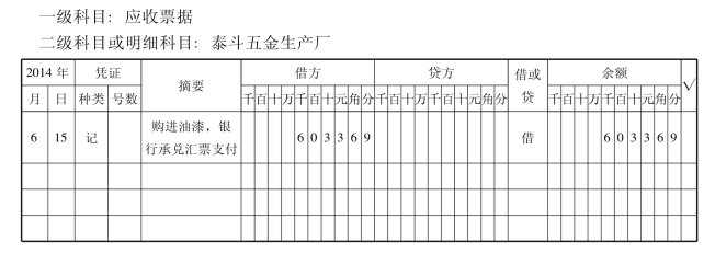 2014年6月15日塞亚瑟电器股份有限公司向泰斗五金生产厂购进油漆,办理了六个月到期的银行承兑汇票用于支付货款。