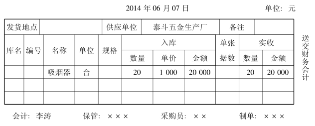 2014年6月7日,塞亚瑟电器股份有限公司从泰斗五金生产厂购进“浩特牌”吸烟器20台,单价1000元,交付承兑期为60天的银行承兑汇票。2014年8月7日支付票款。