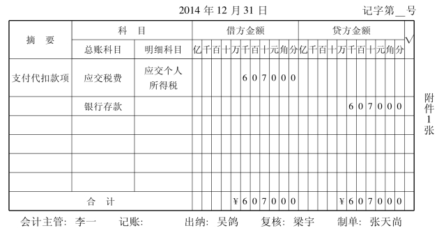 (3)支付代扣个人所得税。