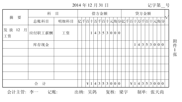 (1)根据“工资结算汇总表”发放工资。