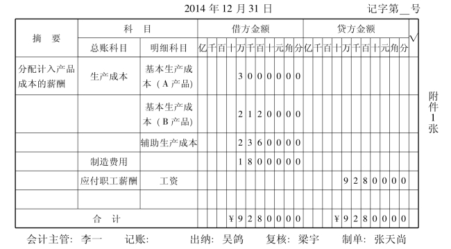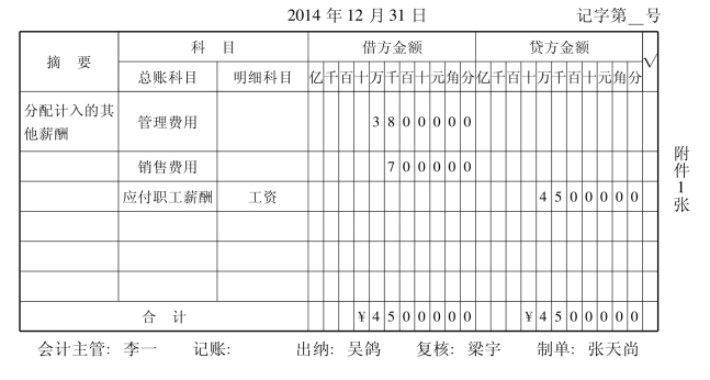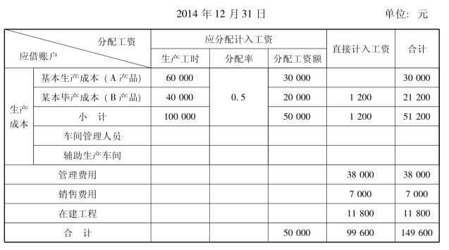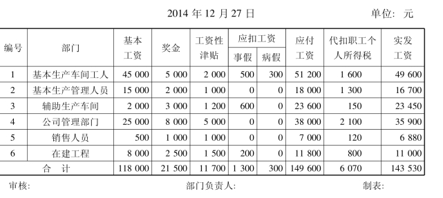 塞亚瑟电器股份有限公司2014年12月份公司职工工资结算汇总表如表10-14所示。