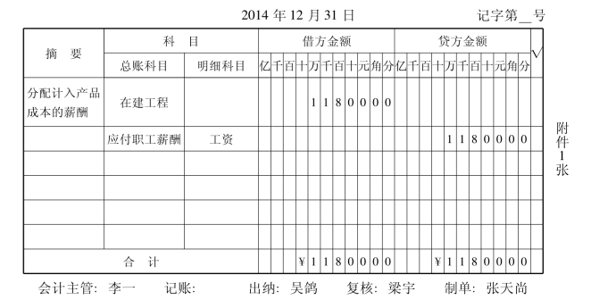 (2)应由在建工程负担的职工薪酬,计入建造固定资产成本。