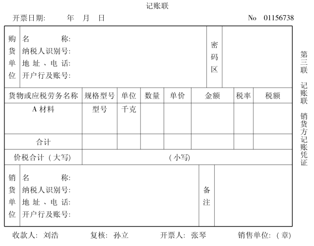 2014年12月3日天鸿电器生产有限公司向华光电器生产有限公司销售A材料一批,确定账面成本35000元,售价42000元,增值税7140元。收到价税款转账支票一张。