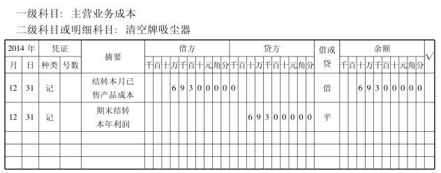 表15-3 主营业务成本明细账