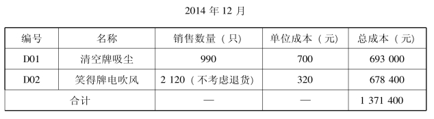 2014年12月,天鸿电器生产有限公司根据销售凭证汇总各产品的销售数量,并按存货发出的计价方法确定其单位成本,各项资料见表15-1。