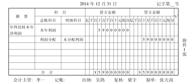 (4)根据稽核后的记账凭证,登记“利润分配”账户有关明细账,结计本年有关账簿。