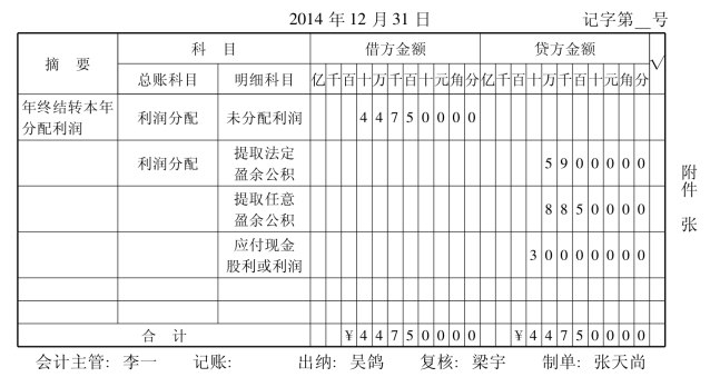 (3)编制结转本年已分配利润的记账凭证(见表18-17),并报送财务部负责人稽核。