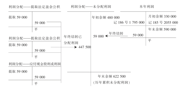 图18-1 “本年利润”和“利润分配”年终结转关系及余额图