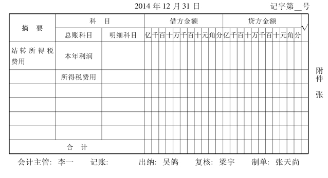 2014年12月31日将本月各损益类账户的余额转入“本年利润”账户中。