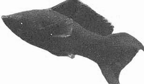关于黑玛丽鱼的来历,业内有多种说法,但它黑金丝绒一样的体色,令人当然认为它是杂交或人工选育的品种。琴尾黑玛丽的出现更曾轰动一时,其独特的体色,使它成为水族箱里的绝佳调色剂。雄鱼体长5厘米,雄鱼体长7~11厘米,亚纺锤形。尾柄长,尾鳍后缘平直,全身墨黑色。黑玛丽适宜水温24~27℃,硬度12度。对水温敏感,如水温长期偏低,易患病,不易繁殖。喜食植物性饵料,如水草嫩叶、藻类等,也食动物性饵料如鱼虫。性情温和,宜混养。