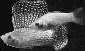 帆鳍玛丽又名珍珠玛丽,体色金色的种类叫金玛丽,它的白化种也是体色金黄,但眼睛是红色的。性格温和,从不攻击其他鱼,杂食,爱啃吃藻类,可喂碎的植物绿叶。对水温适应性极强,22~28℃均可。身长8~10厘米,体幅前后身近似等宽。头吻尖小,尾柄宽长。背鳍前高后稍窄,鳍基长,起自头后背部到尾柄前止;尾鳍宽大,外缘浅弧形;臀鳍很小。体色背部呈浅蓝黑色,体侧渐浅,至腹部泛灰白色,有红点。雄鱼背鳍鳍基黑色,间有点状细纹,外缘镶红色边。尾鳍浅红色。也有细纹及斑点,有变异为黑色或白化种玛丽。帆鳍玛丽对水质比较敏感,宜生活在弱碱性水中。要常换新水,防止水质酸化,在偏酸性的老水中不易成活。性情活泼好动,可以其他水质要求相近的小鱼混养。