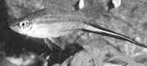 野生的剑尾鱼体色呈青蓝色,故又称蓝剑.剑尾鱼原来的体长可达10~12厘米。人工饲养后变小型化,约7~8厘米。体形和月鱼相似,但尾柄较长,背鳍居中,腹鳍腹位,突出标志是雄鱼尾鳍下叶延长似剑,剑长超过体长,由此得名。体色橄榄色,鳞片边缘褐色。两侧中部有一条紫红色条纹,从鳃盖后起直至尾部,条纹上下有浅蓝色镶边;剑尾呈绿色或橙色,边缘黑色。背鳍上有红斑点。雌鱼色泽不如雄鱼,无剑尾。剑尾鱼容易变异和杂交而产生新种,其中最流行的是红剑,还有黄剑,白剑、黑鳍红剑、黑鳍白剑、鸳鸯剑等。鳍形也有变化,如有尾鳍上下叶均延长似剑的,有背鳍、尾鳍长大的。这些品种,深受欢迎。剑尾鱼的适应能力很强,在水温为20~25℃,弱酸性、中性或微碱性水中,都能生长和繁殖,最适生长水温24℃,也能耐16~18℃的低温。杂食性,各种饵料都摄食。剑尾鱼虽然备“剑”,但并不好战,恰恰相反,它们性格温和、善良,从不欺侮弱者或不同种者。易和别的热带鱼混养。