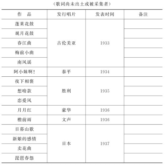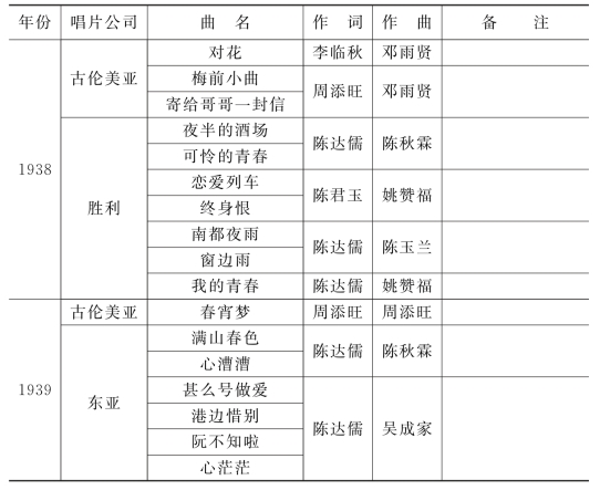 表3-3 1932—1939年发行闽南语流行歌之唱片公司一览表