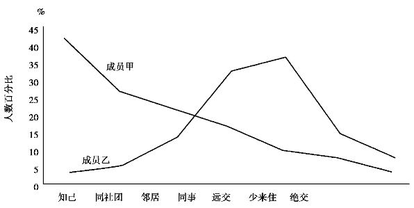 图2-11 同一群体成员对甲、乙两人的社会距离