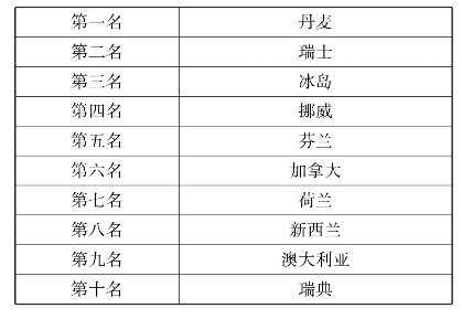 表9-3 幸福指数排在前十名的国家
