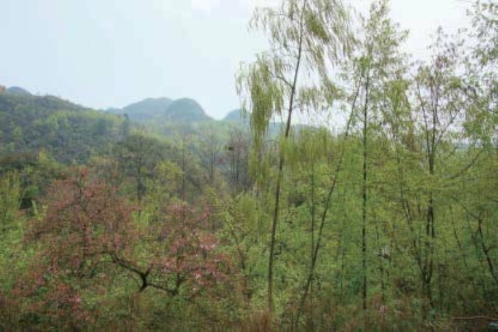 本区地带性植被属中亚热带落叶阔叶林带,顶极植被有石灰岩常绿栎林与石灰岩常绿落叶混交林及石灰岩灌丛植被。常绿阔叶林目前仅见于东林寺(图2.4),常绿落叶阔叶混交林主要分布于百花湖小山峡附近岛屿、半岛,以及三屯、姜家堡进深的山地。而其他山体由于人为影响,现今所见的大部分植被类型都为次生性的针叶林,在百花湖区与观山湖区有多种类型的水生植物群落。具体植被类型有红淡比林、马尾松林、华山松林、杉木林、马桑灌丛、箬竹灌丛、蔷薇灌丛、火棘灌丛、月月香灌丛、悬钩子灌丛、芒草丛、白茅草丛,人工植被类型有杨梅林、柑橘林、樱桃林、桃林、菰(茭白)群落、藨草群落、香蒲群落、黑三棱群落、莕菜群落、萍蓬草群落、海菜花—菰+水葱群落、贵州水车前群落、篦齿眼子菜群落(龙须眼子菜)、狐尾藻群落等。由于人为活动的影响,湖区周边植被覆盖率略有下降,森林覆盖率约35%,主要分布于湖东和湖西。湖西分布有阔叶树及马尾松天然林,马尾松、华山松及杉木等人工针叶林。湖东主要为马尾松人工林。另外,水生植物群落类型多样,形成了丰富的湿地景观。