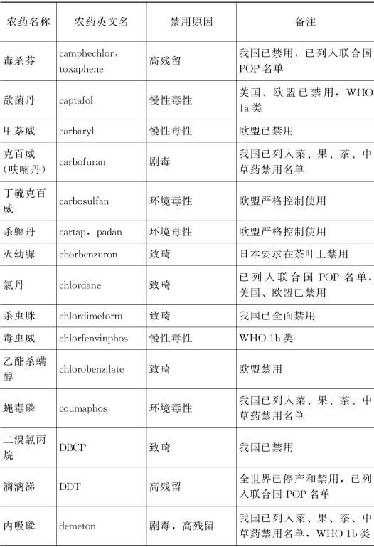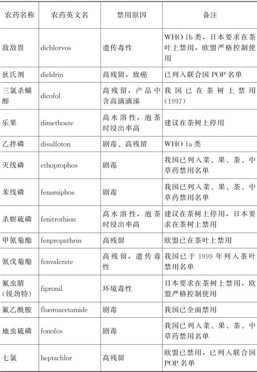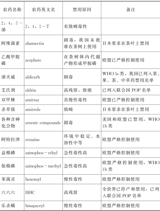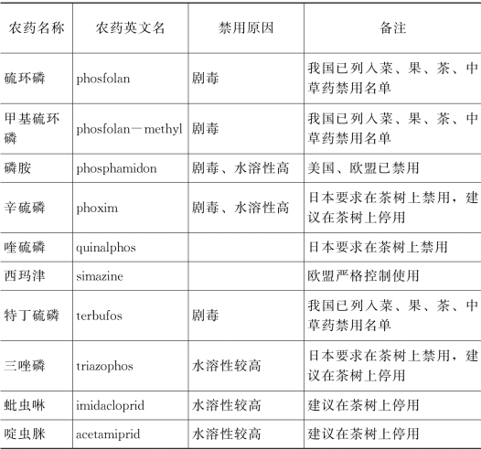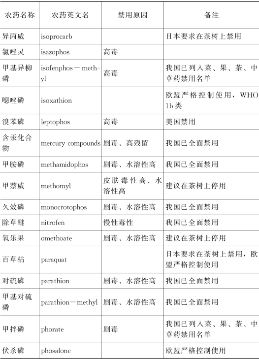 附录3 茶园禁用和建议停用农药