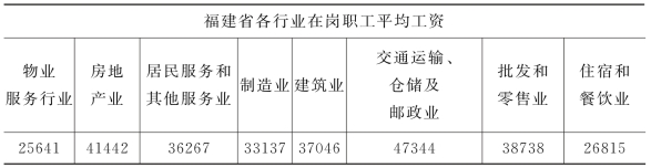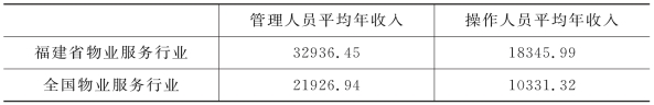 (3)物业服务企业虽然投入大量人力成本,但是同福建省其他行业相比,物业服务企业仍然无法为从业人员提供相对有吸引力的工资和福利,导致物业服务企业从业人员流动性大,专业性差(见表1-3)。物业服务企业经济效益低下无法满足从业人员需求,从业人员整体素质较低又反过来制约了物业服务企业经济效益的提高。