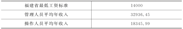(2)物业服务企业人力成本逐渐增多,物业服务企业经济效益更低。同全国物业服务行业进行横向比较,福建省物业服务企业的管理人员、操作人员年平均收入分别是国家物业服务企业的管理人员、操作人员年平均收入的1.5倍和1.8倍(见表1-1)。同福建省最低工资标准进行纵向比较,福建省物业服务企业的管理人员、操作人员年平均收入分别是福建省年平均最低工资标准的2.35倍和1.3倍(见表1-2)。