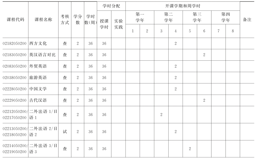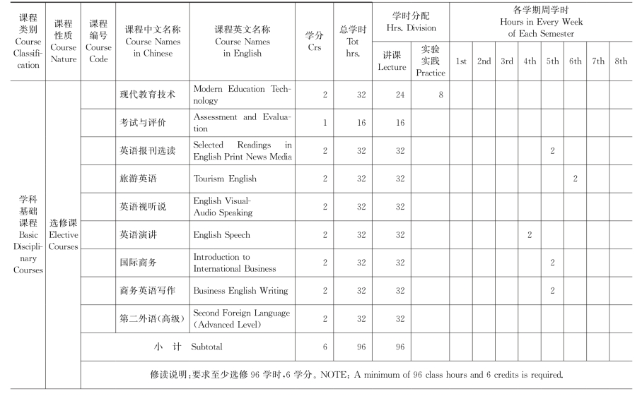(二)学科基础课安排表