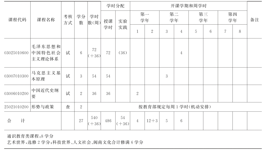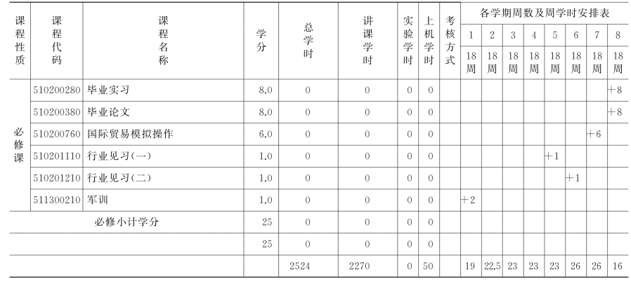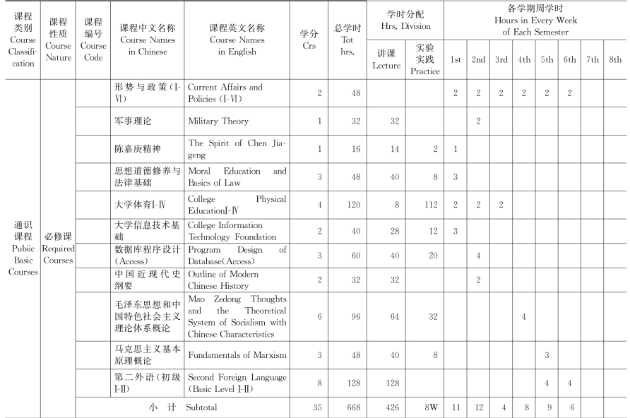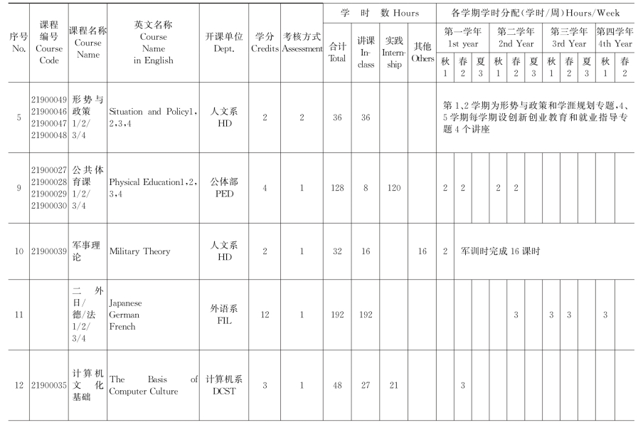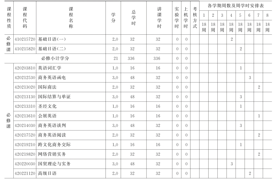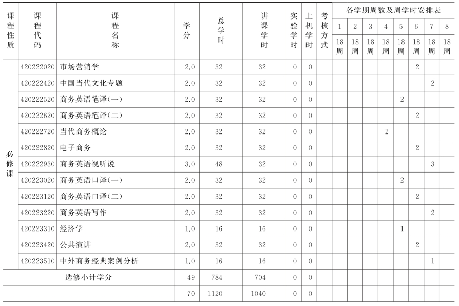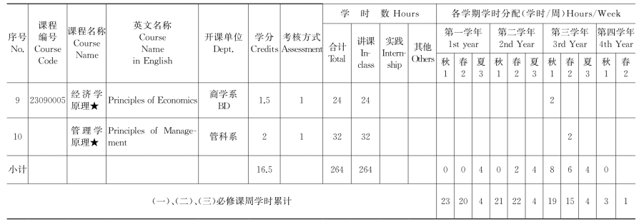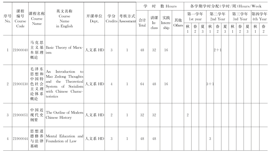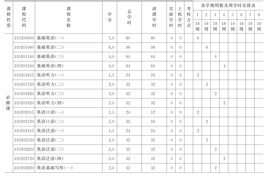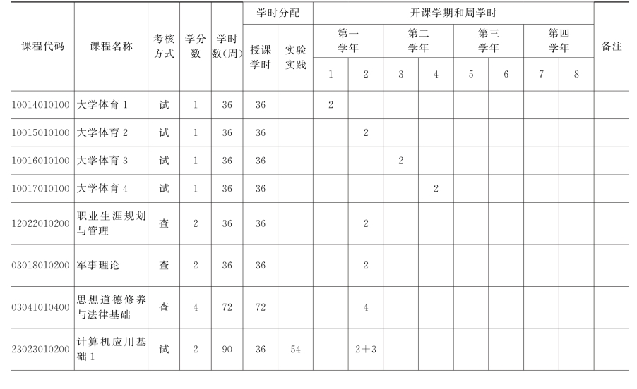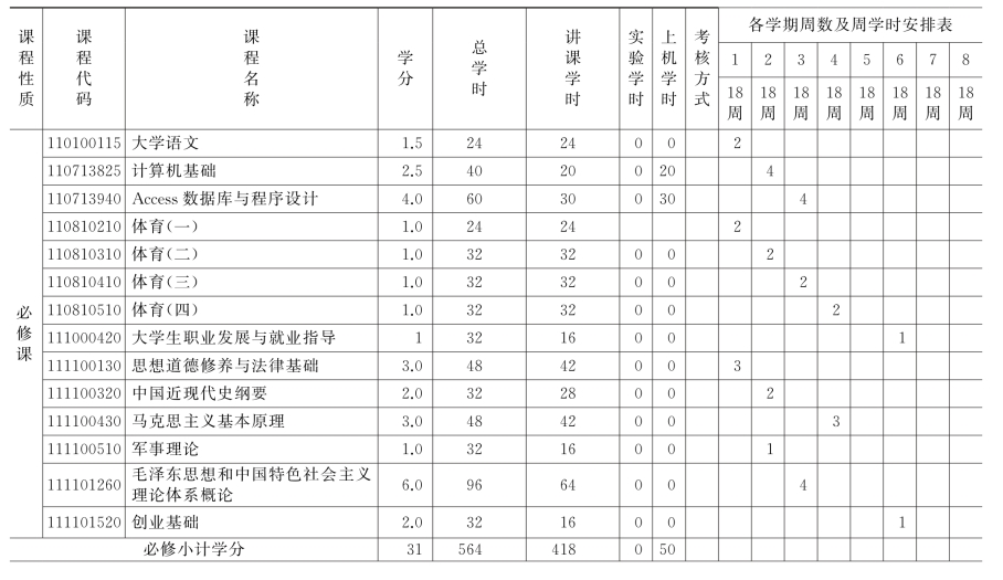 (一)公共必修课安排表