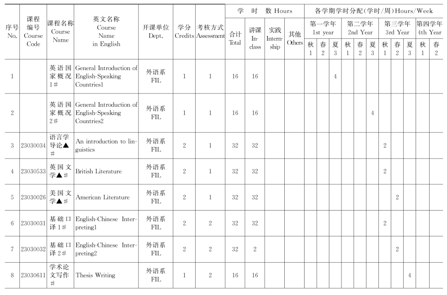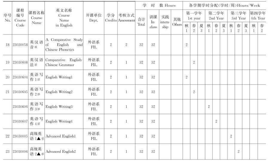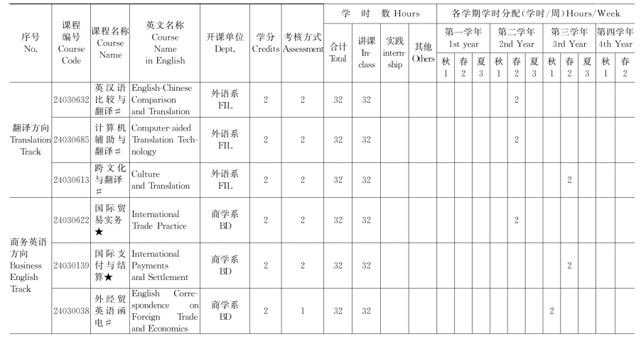 注:专业核心课程用“▲”,双语课用“★”,纯英语课用“#”