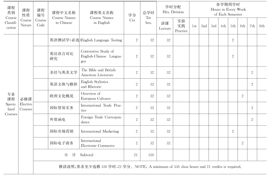 (二)专业课Major Courses of English Program