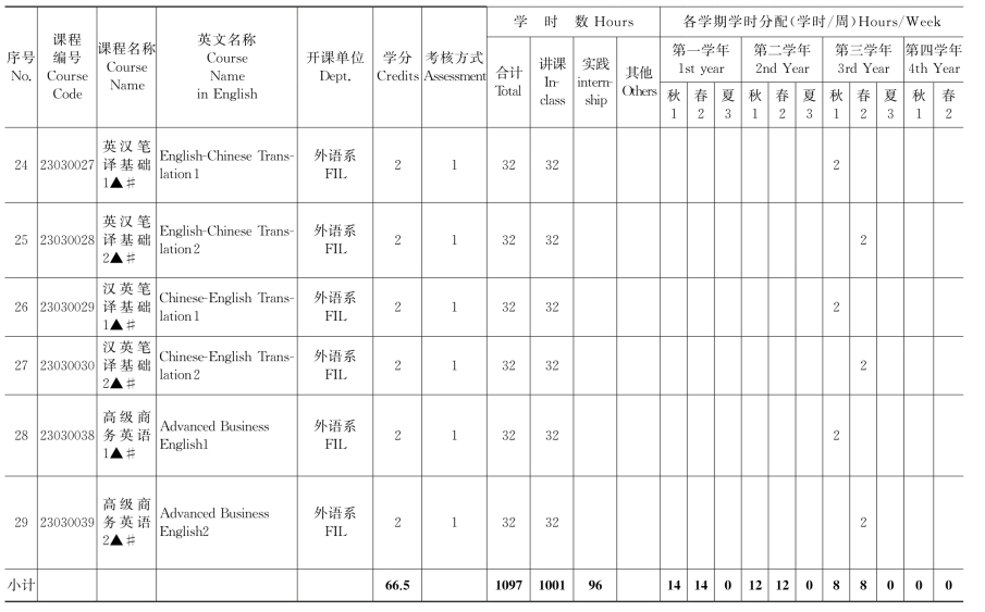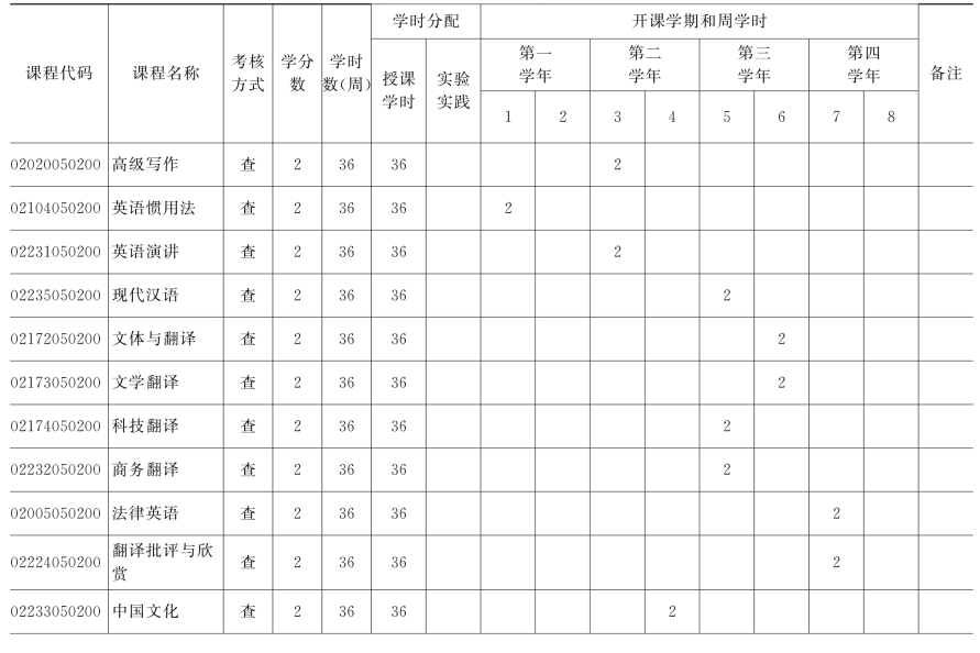 闽南师范大学翻译专业课程设置